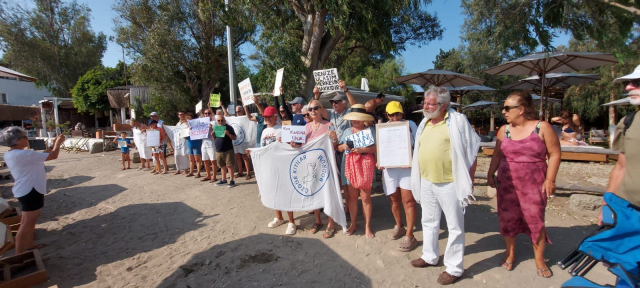 Halk plajının halktan alınarak işletmelere tahsis edilmesine reaksiyon gösteren Gümüşlük halkı ve STK’lar protesto şovları düzenlerken, işgal edilen halk plajında şov ve hareketler icra edildi, yaklaşık 200 kişinin altını imzaladığı dilekçe, hukuksuzluğun düzeltilerek plajın derhal halka iadesi için Belediye Başkanlığı ve Kaymakamlık makamına sunuldu.