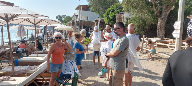 Gümüşlük halkı yaptığı onca müracaata karşın rastgele bir somut cevap alamazken bölgedeki protesto şovları kesintisiz devam ediyor. Bodrum Belediye Başkanı Mandalinci’ye çağrıda bulunan mahalle halkı ve konuklar bu yasa dışı uygulamanın son bulmasını, halkın olan kıyıların bir an evvel halka geri verilmesini talep ediyor.