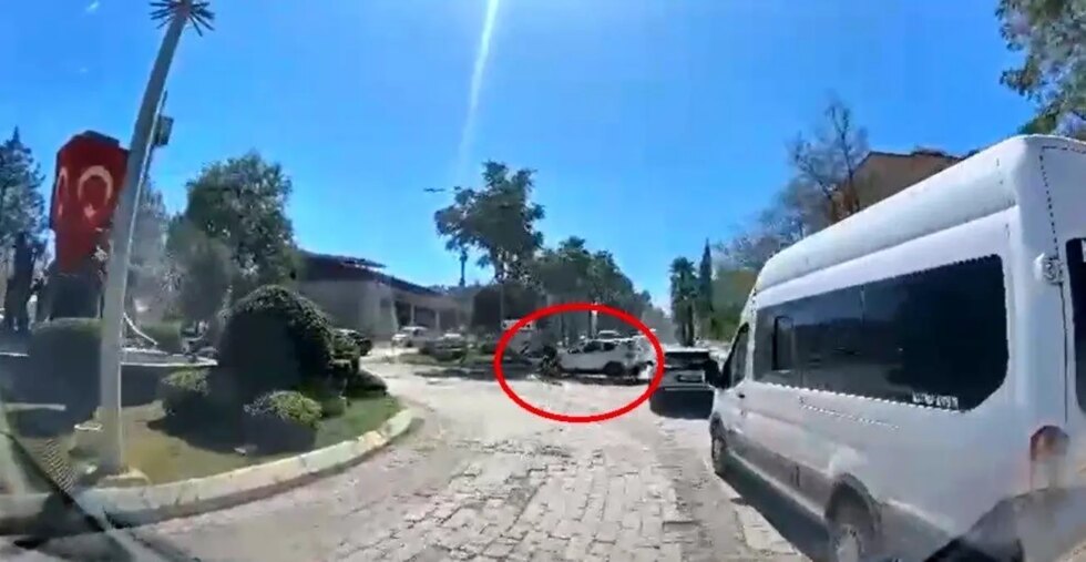 Hatay’ın Kırıkhan ilçesinde araba ile motosikletin çarpışma anı araç içi kamerasına yansıdı.