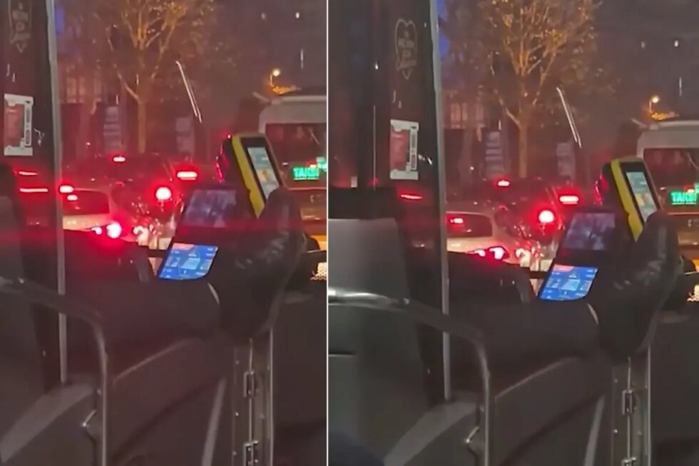 Seyir halindeki “622-Yenidoğan-Mecidiyeköy” seferini yapan İETT otobüsünün sürücüsü, sağ ayağını validatör aygıtının bulunduğu kısma uzattı.