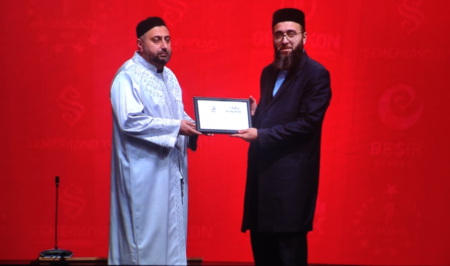 Kudüs Yüksek İlmi Heyeti Başkanı ve Mescid-i Aksa İmam-Hatibi Pir İkrime Sabri Semerkand Vakfı’na manalı bir armağan gönderdi. Semerkand Vakfı Genel Başkanı Yakup Yakuboğlu tarafından alınan armağanda, Mescid-i Aksa’da yer alan, Kudüs’ün simge yapılarından Kubbetü’s-Sahra’nın kubbesinden bir modül ve Pir İkrime Sabri’nin yapılan hayri hizmetler ve bu değerli program vesilesiyle Semerkand Vakfı’na teşekkürleri yer alıyordu.